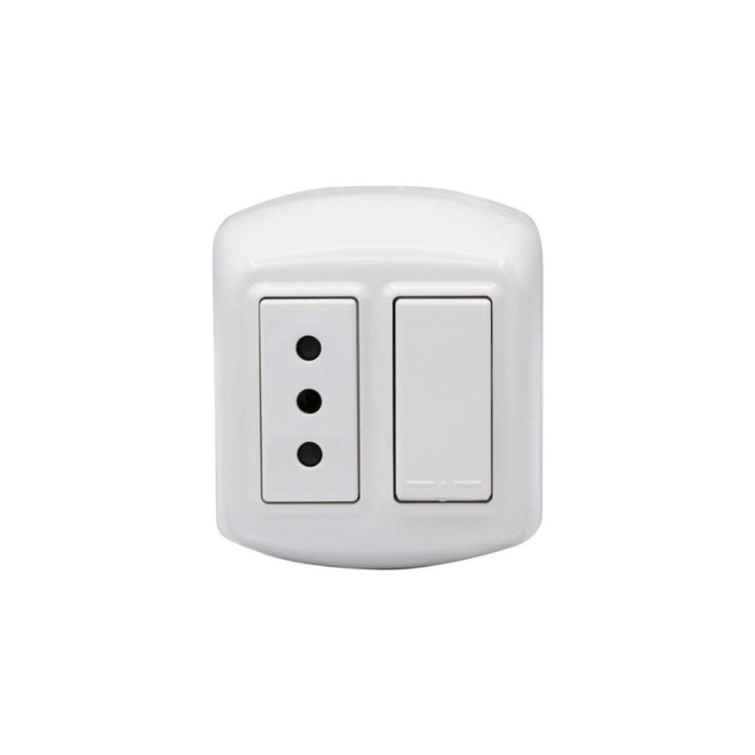 Enchufe + Interruptor Sobrepuesto Blanco Bticino Modus Plus Cal1203bn